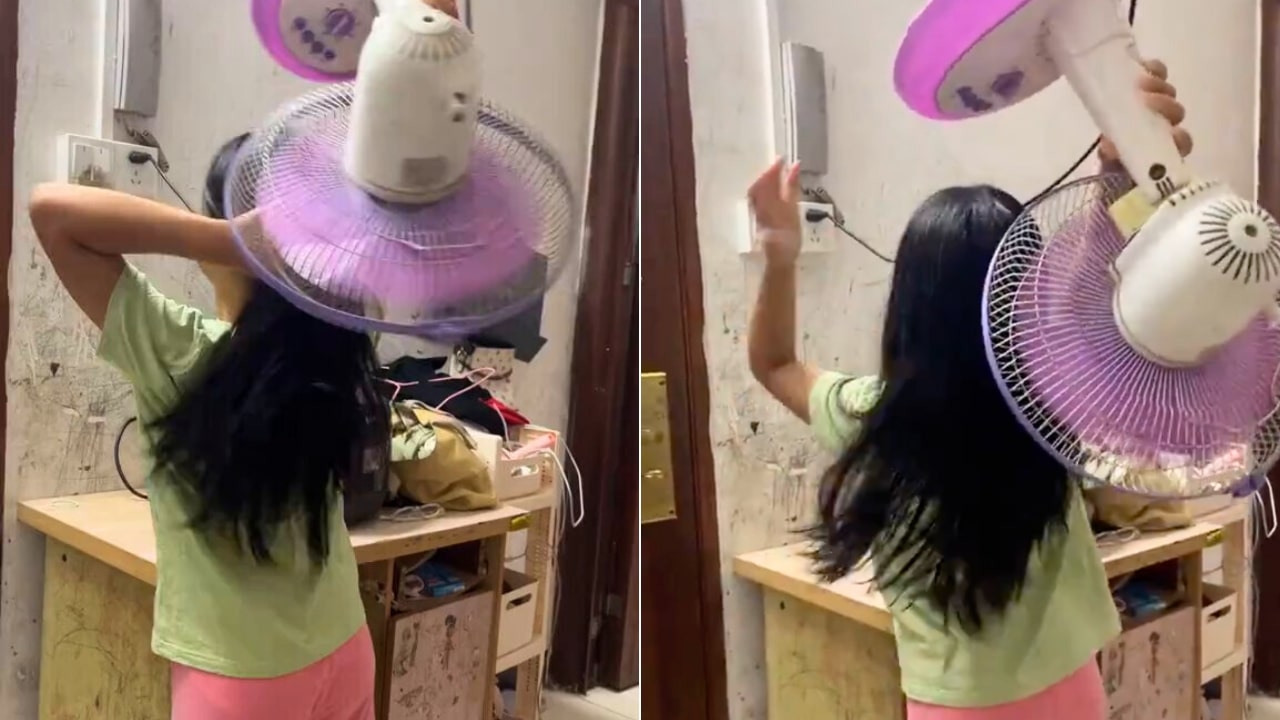 Before delving into the specifics of this video, consider the fact that you’ve often seen girls and women use a hair dryer to dry their hair after washing it. This is the most common and straightforward method. However, in this viral video, a girl has done this in a completely different way. The video shows a girl drying her wet hair, but instead of a hair dryer, she’s holding a small stand fan. She turned on the fan and then, holding it in her hand, began moving it through her hair as if it were a hair dryer. In other words, she accomplished what’s usually done with an expensive and specialised device straightforwardly and inexpensively.